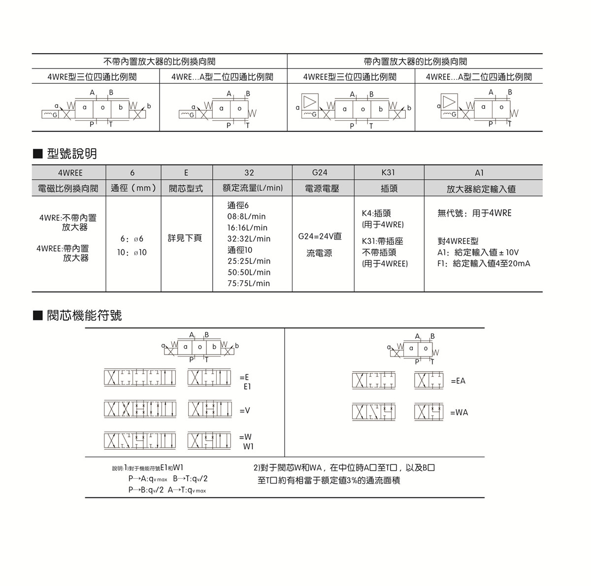 ● 4WREE:帶集成式放大器 ,  可與歐美同類型產(chǎn)品互換。